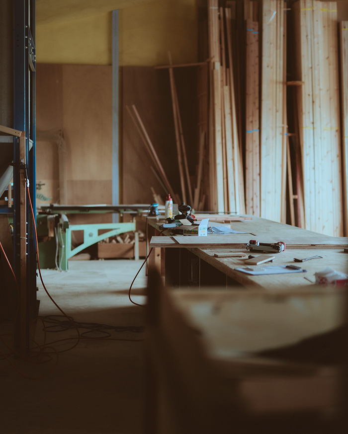 京都と千葉に構えた自社工場には、精工な造作物を作る技術を持った職人が在籍。デザイン性の高い什器や装飾も、熟練の手と最新設備により実現可能です。展示会ブースに欠かせない壁となる木工パネルも、大量生産が可能な体制を整えており、大規模ブースも対応しています。