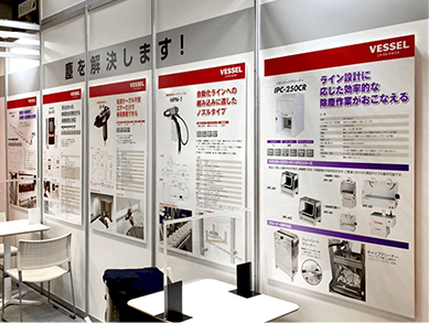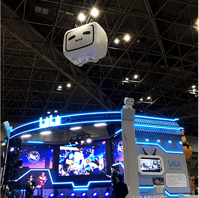 ブースの上空にバルーンを浮かせるのは展示会ならではの装飾です。広い会場の中で遠くからも見つけやすいため、集客も抜群。 球体・キューブ・ドーナツ型のバルーンに企業名を入れるのが主流ですが、イメージキャラクターや製品の形をバルーンにするのもオススメです。