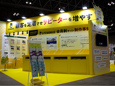 ブースの床にもグラフィックを装飾することができます。床材の上に床用糊付シートを貼り込んで、一部分にグラフィックを掲出したり、全面貼りして大迫力のブースを作ることも可能です。