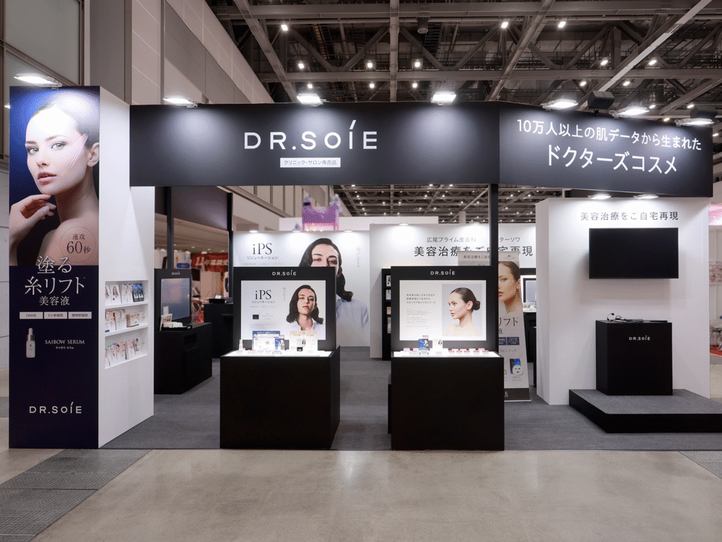 デザイン設計から施工まで担当させていただきました。ブースの明るさを求められるお客様が多い中、コスメディア様側は間接照...