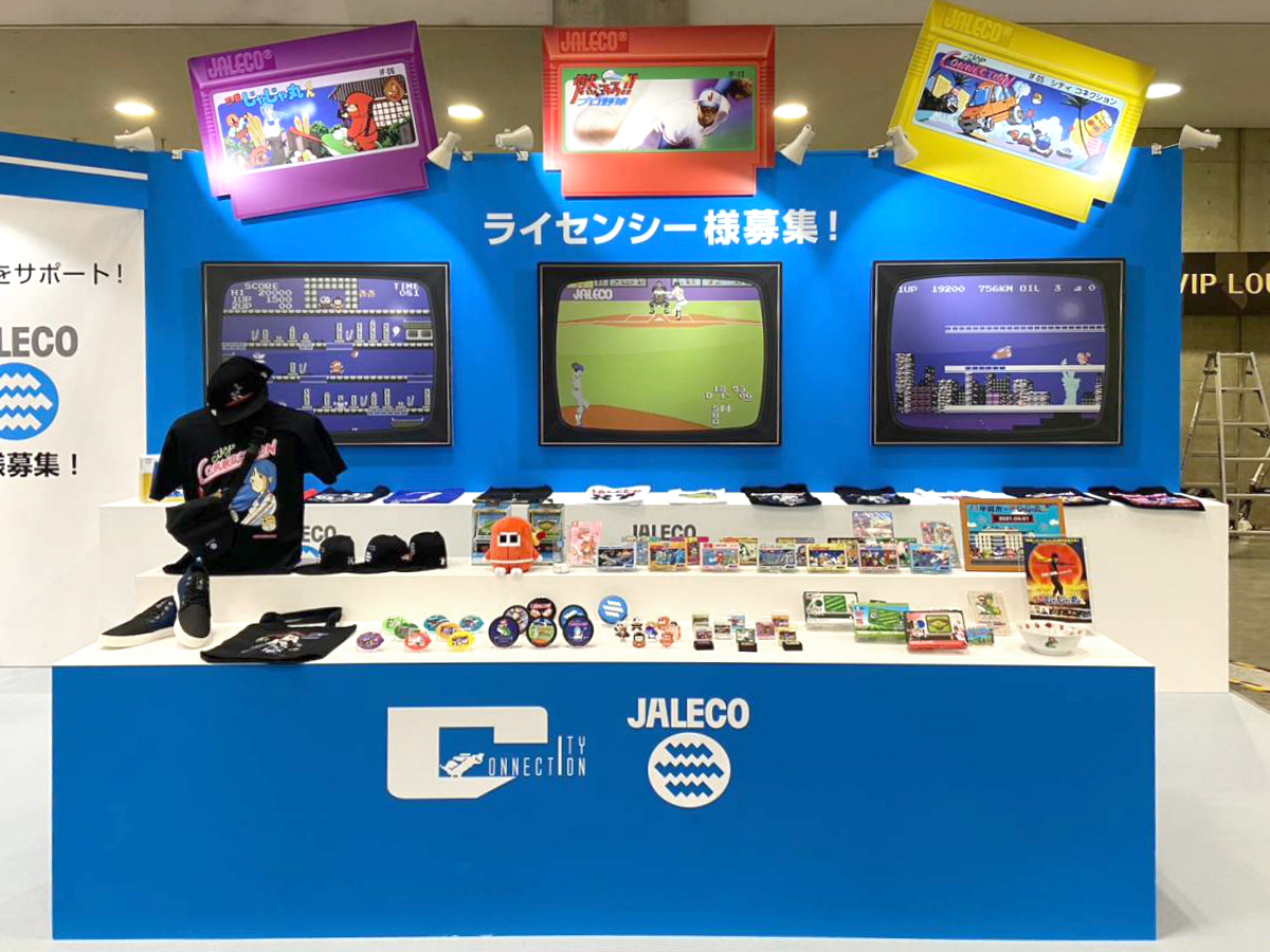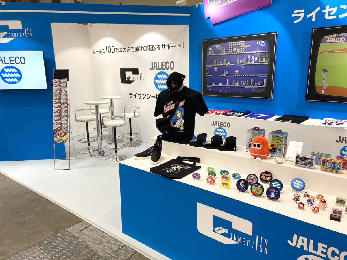 デザインから設計施工まで担当させていただきました。コストを抑えながらも懐かしのファミコンの世界観を全面に打ち出しました。出展社様ご提供のファミコンカセットやブラウン管テレビのデータをカットアウトで配置し、少年心をくすぐるアイキャッチとなりました。