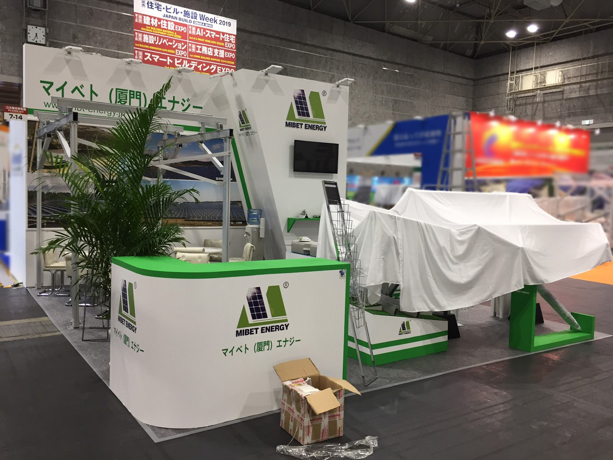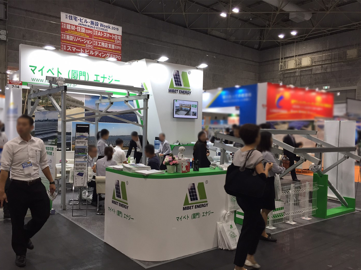 前回出展時の対応を評価していただき、リピートいただきました。中国を代表するエネルギー製品の架台メーカー様で、デザインをご提供いただき、施工&サインを担当。社名ロゴのグリーンをアクセントに、ディスプレイをメインとした分かりやすいブースとなりました。