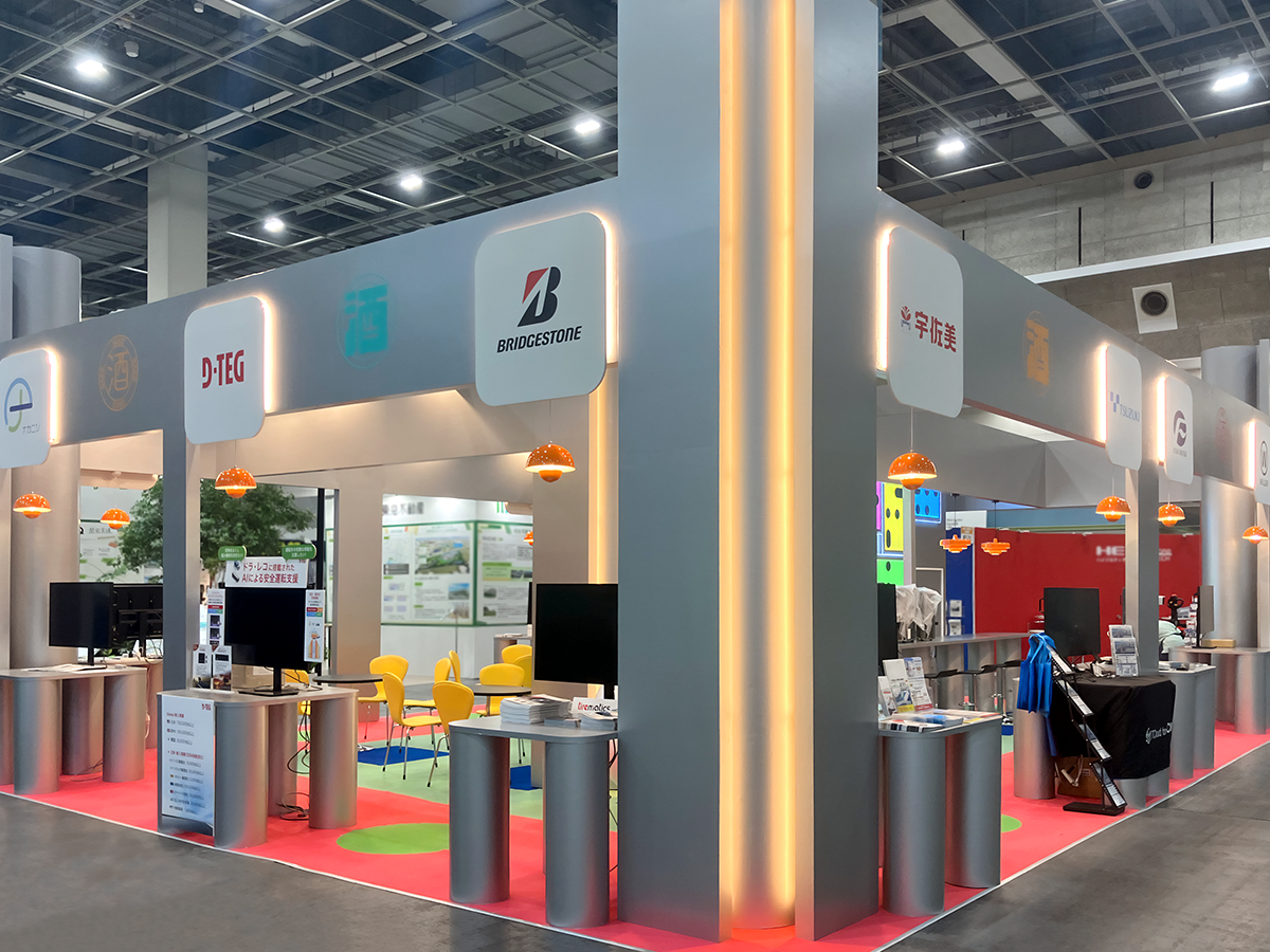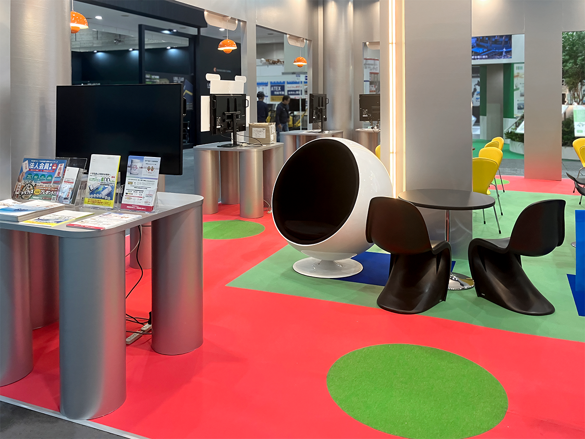 ナカニシ様より「来場者が、なんだろう…と驚くようなブースを」とのご要望をいただき、今回は“レトロフューチャー”をテーマにデザインいたしました。外観はシルバー基調と間接照明でレトロな未来的を演出し、ブース内部は懐かしさを感じさせる照明やセレクト家具、床の張り分け等にこだわり、レトロな要素を盛り込んでいます。お酒・ドリンクの提供もあり、来場者とのコミュニケーションを促進する、今回も話題性の高いブースとなりました。
