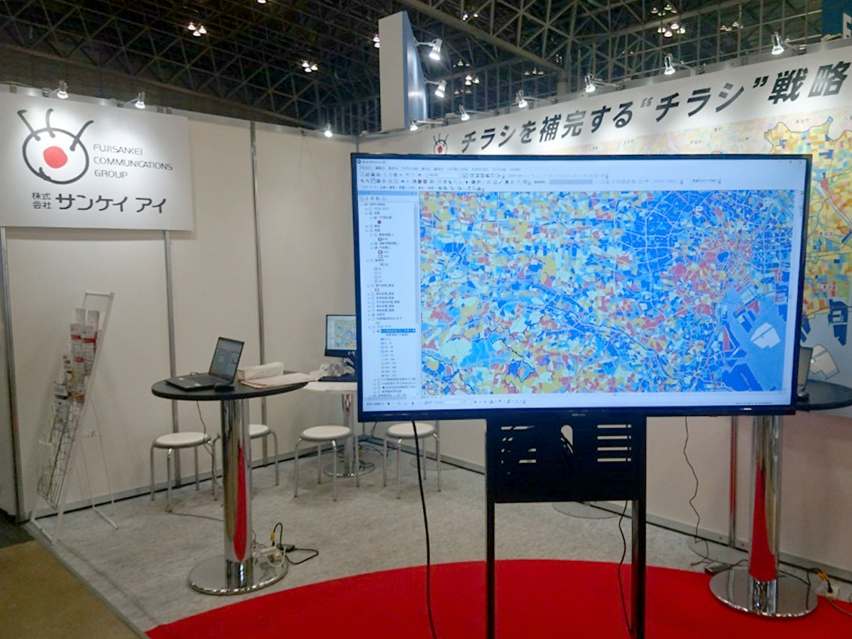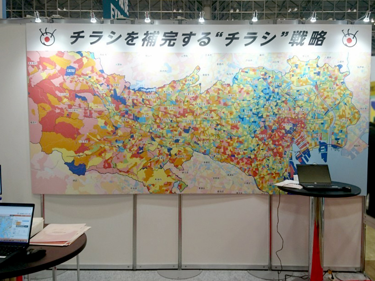 メイン商材をわかりやすく告知するため、該当エリアの大型マップの掲出とPCデモで、インパクトと明確な説明との両立を図りました。