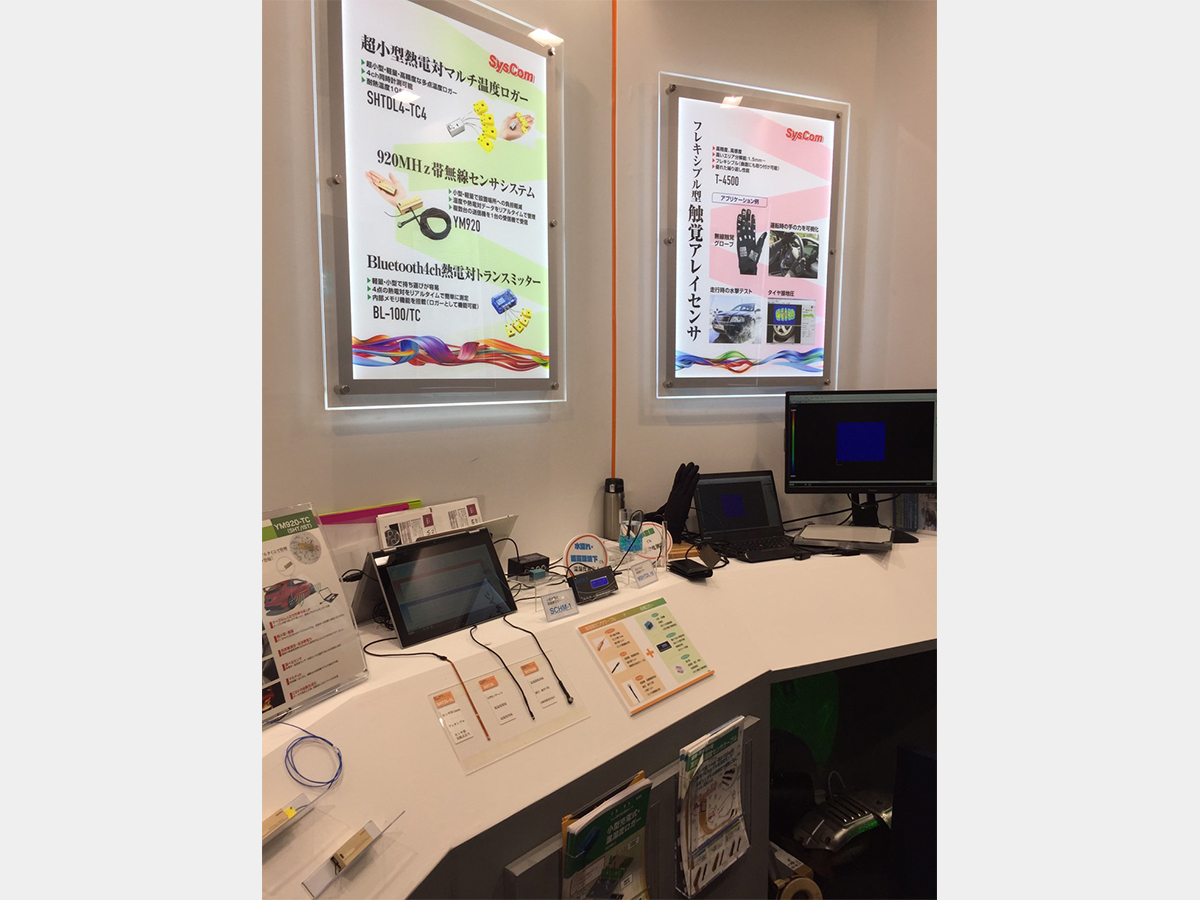 コーポレートカラーを生かした明るい色合いと、展示商品と併せたLEDパネルの使用で目立つブースとなり常に人が訪れていました。